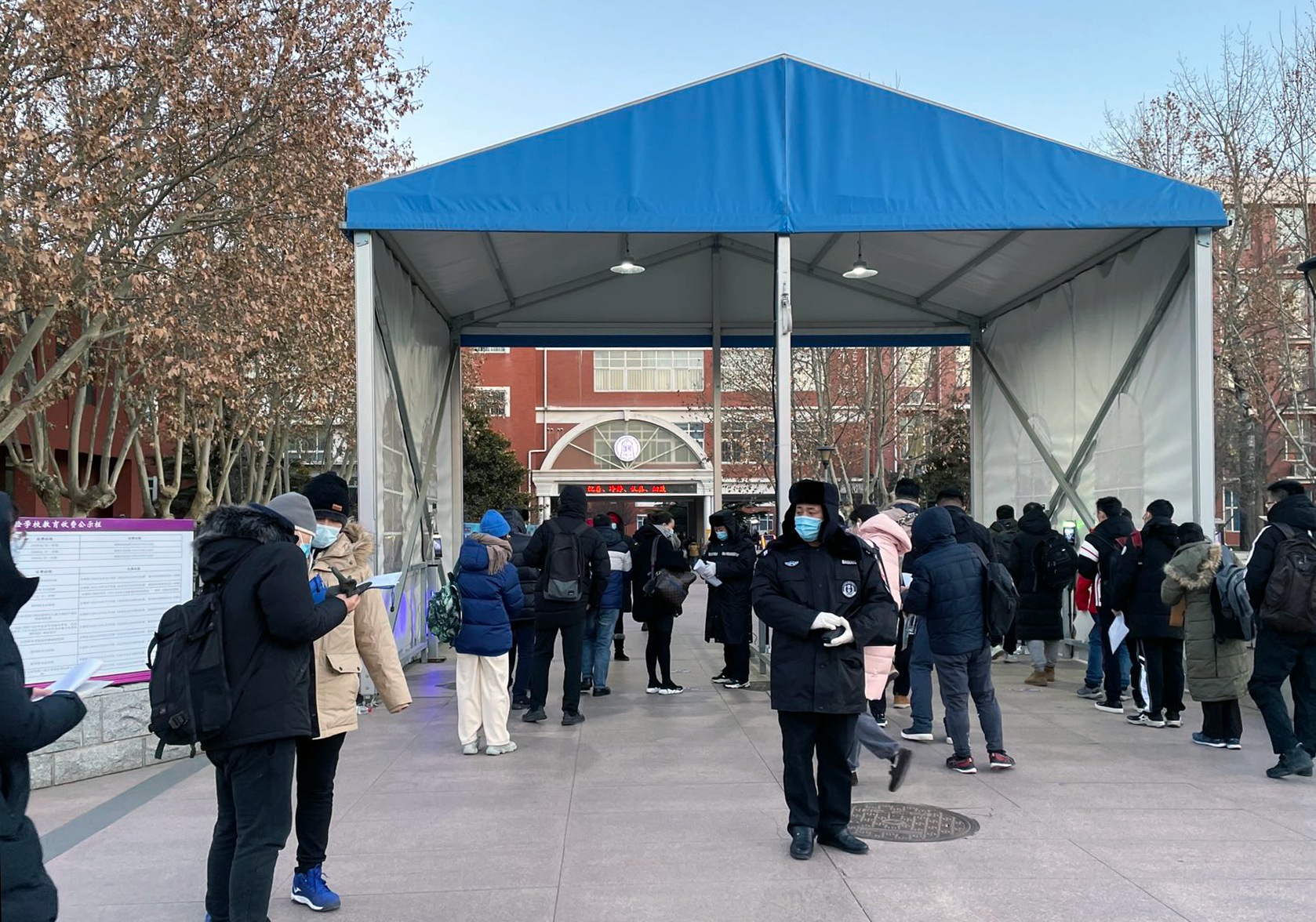 坚持以人为本,切实保障考生切身利益。考试期间北京遭遇寒潮天气,达到入冬温度最低值,在严格做好疫情防控的同时,学校通过各项细致安排,努力使广大考生感受到研考组织工作的温度和精准度。为方便考生快捷前往考场、顺利参加考试,提前制作考场考区分布地图以及绿色交通出行提醒、并发布相关考点公告,从校门口到考场全程设置沿途指示牌为考生提供便利,在入校专用通道提前安排通往各个考场的摆渡车。对于行动不便等特殊情况考生,为考生提供全程一对一的特殊服务。考生中午考试结束后可离校就餐,也可凭准考证和身份证前往校内食堂临时就餐。